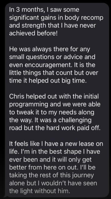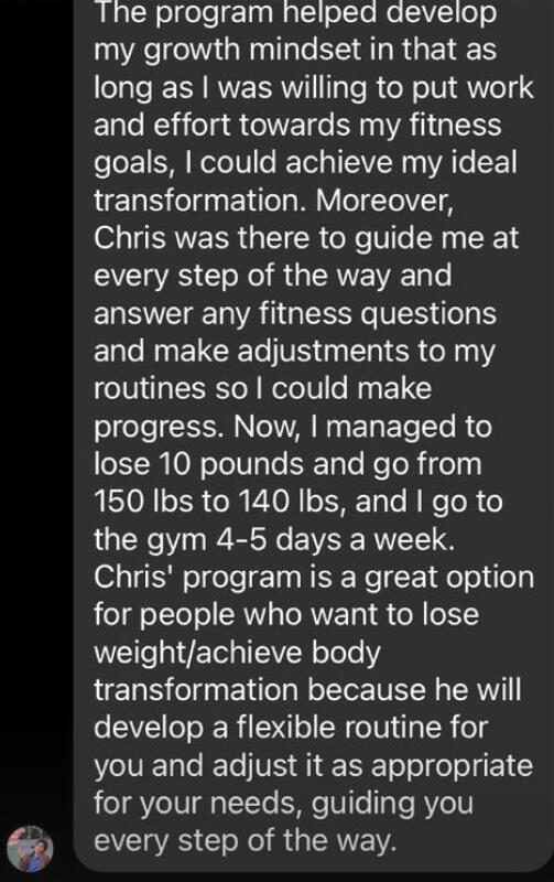 Hey there, Coach Chris here!I'm a fitness coach & medical student who helps busy professionals achieve body transformations.I started HGBT Consulting in 2021 to help others lose weight, gain lean muscle, and develop healthy habits in a sustainable and fun way!
